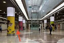 エスカレーターを下りたら矢印の方向へ真っ直ぐ突き当たりまでお進み下さい。